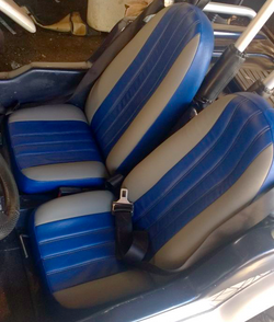 ![]() Enc. e Assento banco de caminhão. | ![]() Revestimento em banco Recaro. |